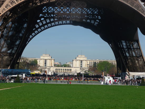 Freitag, unser letzter Tag in Paris. Es herrschte wieder Sonnenschein pur. Eigentlich wollten wir ja heute ein bisschen shoppen gehen und natürlich endlich das Wahrzeichen, den Eiffelturm, von nahem sehen. Also ging es nach einem ausgedehnten Frühstück auf dem Campingplatz wieder los in Richtung Centre Ville. Mit dem Eiffelturm starteten wir auch unseren Tag, doch mit uns kamen wieder etliche andere Paris-Besucher auf dieselbe Idee. Unten anstehen von mindestens einer Stunde, in der 1. Etage noch mal Wartezeiten von 45 -60 Minuten. Danke - das war's dann auch. So lange wollten wir den wundervollen Tag wirklich nicht verplempern. Also die obligatorischen Pflicht-Photos machen und dann nix wie weg hier