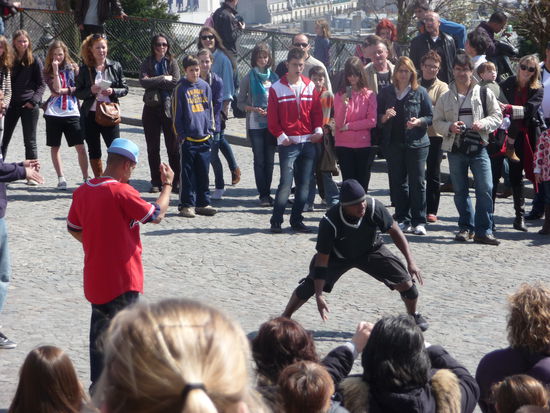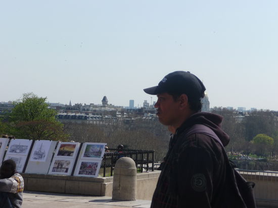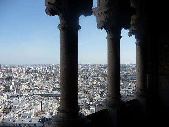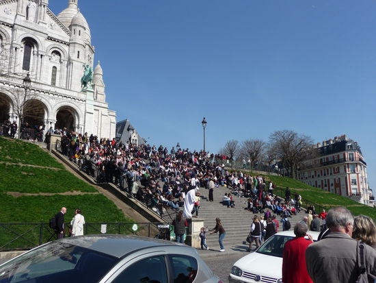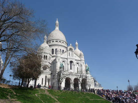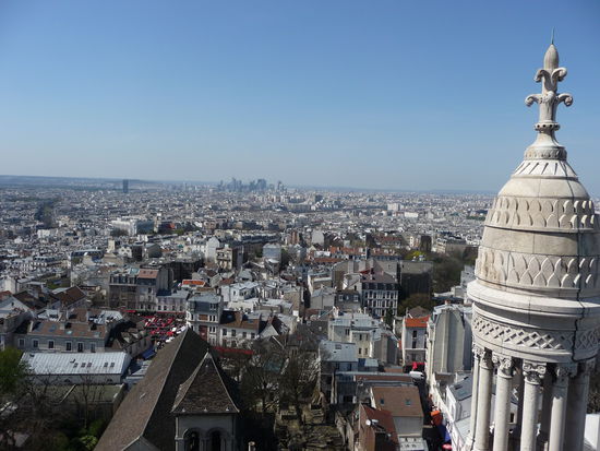 Über das Palais Chaillot und den Place de Trocadero ging es zur nächsten Station: Montmartre. Hier waren zwar auch viele Menschen, aber die saßen vor der Kirche Sacre Coeur und lauschten den Musikanten und Straßenkünstlern. Drinnen war nur wenig los und hinauf auf die Kuppel wollte fast niemand. Wir schon und es war traumhaft. Ganz Paris lag uns zu Füßen Pfeif auf den Eiffelturm!