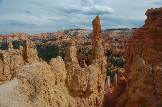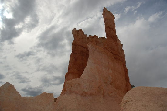 Die Bezeichnung Canyon ist eigentlich nicht richtig. Es handelt sich nicht um eine Schlucht im üblichen Sinn sondern um eine Abbruchkante des Paunsauguntplateaus, das sich einige hundert Meter über das östliche Tropic Valley erhebt. Zwischen dem Rand der Hochebene und dem tiefer gelegenen Gelände erstreckt sich auf rund 25 Meilen Länge ein Gebiet bizarrer Felsformationen aus erodiertem Sandstein. Im Laufe vieler Jahrtausende hat Wasser diese Märchenwelt geschaffen. Es spaltet Felsen indem es in Spalten gefriert und sich ausdehnt. Ein Prozess, der sich unzählige Male im Jahr wiederholt. Heftige Gewitter nagen im Sommer zudem an den weicheren Kalkschichten. Härtere Deckschichten versuchen dem Wasser Widerstand zu leisten. Doch langsam bilden sich kleine Abflusskanäle entlang von Rissen im Gestein. Es entstehen Minicanyons, die irgendwann zu den weicheren Gesteinsschichten durchdringen. So entstehen diese grandiosen Türme, die oben aus einer harten Schicht bestehen und unten in der weicheren Schicht immer schmäler und schmäler werden bis sie irgendeinen schönen Tages in sich zusammenbrechen.