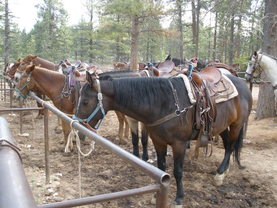 Da wir mit dem Camper zur Bryce Lodge fahren müssen, heisst es alles einpacken, Slide Outs einziehen und losfahren. Schon bald stehen wir am Corrall und begutachten die vielen Mulis. Doch halt, da sind auch Pferde dazwischen. Das Maultier ist eine Kreuzung zwischen einer Pferdestute und eines Eselhengstes. Es gibt auch eine umgekehrte Variante, dies nennt man dann Maulesel. Das Wort "Maul" kommt aus dem Lateinischen "Mulus" und bedeutet so viel wie Mischling. Maultiere können sich selber nicht fortpflanzen. Aufgrund ihrer genetischen Veranlagung sind sie sehr trittsichere Tiere mit grosser Ausdauer und Unempfindlichkeit. Sie eignen sich besonders gut als Reittiere.