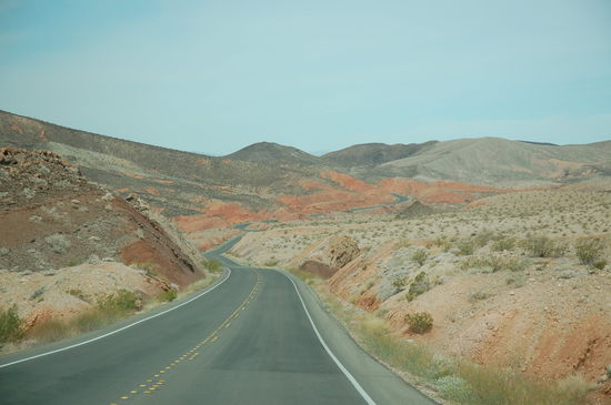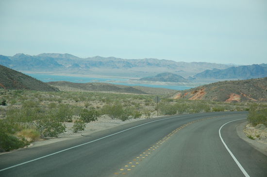 Die letzte Fahrt führt uns dem Lake Mead entlang durch die wüstenhaften Berge. Das morgendliche Licht lässt die unterschiedlichen Gesteinsschichten farblich schön herausstechen. Manche Hügelzüge sind von schwarzem Lavagestein überzogen, darunter leuchten rote oder orange Gesteinsschichten hervor. Manchmal dominieren rosa oder weisse Hügel, die von zarten Wüstenbüschen überzogen sind und manchmal erblickt man wieder den tiefblauen Lake Mead. Eine karge und doch interessante Gegend. Doch unaufhaltsam nähern wir uns der Zivilisation und plötzlich erblicken wir in einer grossen Ebene die grossen Casinos von Las Vegas. We're back! Der Kreis hat sich definitiv geschlossen.