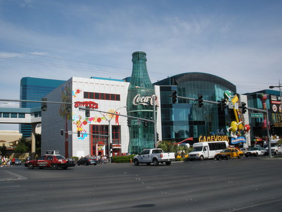 Wir verlassen das MGM und spazieren südwärts den Strip entlang. Viele grosse Läden laden zu einem Besuch ein sei es der riesige Adidas oder Coca Cola Shop. Zudem hat es zahlreiche Souvenirläden, die unter anderem die TV Serie CSI Las Vegas ausgiebig vermarkten.