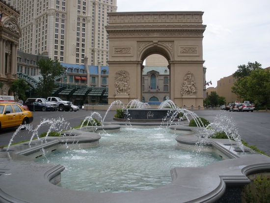 Wir wandern weiter und erblicken Altvertrautes: den Eiffelturm. Vor zehn Jahren entstand ein Stück Paris in Las Vegas. Ein wunderschönes Casino-Hotel, das den Charme von Frankreich widerspiegeln soll. Wir waren 2000 hier abgestiegen und ich fand es wundervoll! Das Hotel hat 34 Stockwerke und fast 3000 Zimmer. Der Eiffelturm wurde im Massstab 1:2 aufgebaut. Die Beine des Turms stehen über einer Nachbildung des Louvres und der Pariser Oper. Natürlich gibt es im Innern eine französische Ladenstrasse, wo man sich in den nächtlichen Strassen von Paris wähnt. Die Gänge zum Kongresszentrum wurden dem Spiegelsaal von Versailles nachempfunden.