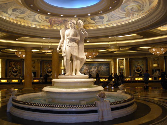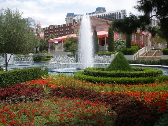 Nach Frankreich besuchen wir Italien. Am 5. August 1966 eröffnete das berühmte Caesars Palace, das die Pracht des römischen Herrschers widerspiegeln soll. Der Komplex verfügt über rund 3400 Zimmer, auf über 12 000 Quadratmetern kann man der Spielsucht frönen. Das römische Ambiente ist höchst beeindruckend! Die Ausstattung geht über Säulen, Statuen, Brünnen, ägyptischen Galeeren und was-weiss-ich-noch-alles. Jürg hat vor diesem Casino den höchsten Respekt. 1991 genossen wir hier drei Tage. Jürg hatte im Casino den grössten Spass, doch auch Panik, dass er niemals mehr in seinem Leben das Hotelzimmer findet... Damals liefen auch noch Kleopatra und Caesar flankiert von römischen Soldaten durchs Casino. Es war eine riesige Show! Keine Ahnung, ob die heutzutage auch noch stattfindet.