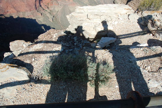 Lange sitzen wir oberhalb des Trails und beobachten mit dem Feldstecher die Sportlichen und Wagemutigen, die den Marsch hinunter auf sich nehmen. Dies ist nicht ungefährlich! Immer wieder passiert es, dass sich die Menschen überschätzen. Sie nehmen zuwenig Wasser mit, haben schlechte Schuhe an oder schlicht nicht mehr die Kraft, den Aufstieg nach dem Abstieg zu bewältigen. Auf Plakaten wird von den Gefahren gewarnt. Die Statistik zeigt, dass es nicht die unsportlichen Touristen sind, die sich überschätzen, sondern meist sportlich übermotivierte junge Männer. Vor ein paar Jahren starb eine bekannte Marathonläuferin. Sie und ihr Partner wanderten bis hinunter an den Colorado River und hatten zuwenig Wasser bei sich. Schon bald stellte sich Dehydration ein. Er setzte sich irgendwo in den Schatten, sie wollte Hilfe holen. Er überlebte es, sie starb unterwegs. So gibt es viele tragische Geschichten von Menschen, die die Gefahren des Canyon unterschätzten.