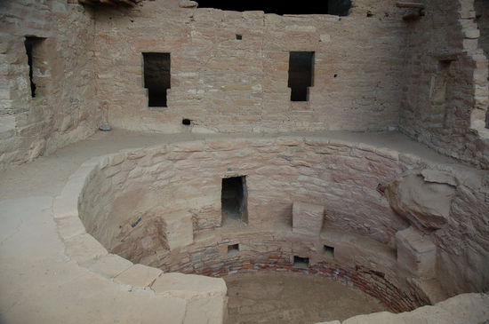 Cliff Palace ist die grösste Ansammlung von Felswohnungen in den ganzen USA. Hatten wir im Spruce Tree House 8 Kivas, gibt es hier 23. Man geht davon aus, dass hier zwei verschiedene Kommunen zusammen lebten. Der grösste der Kivas ist mitten drin und verband vermutlich die anderen Zeremonienräume. Cliff Palace wurde irgendwann zwischen 1190 und 1260 aufgebaut. Gewisse Räumlichkeiten wie der imposante Turm wurde von der Nationalparkverwaltung wieder aufgebaut.