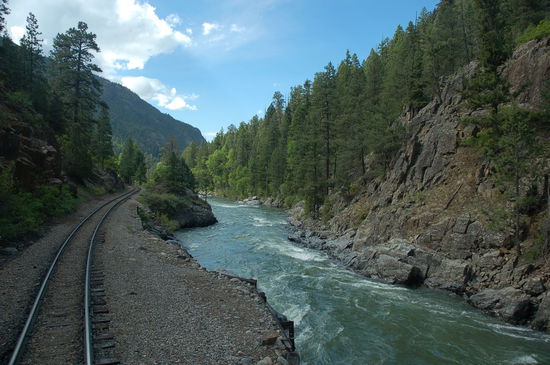 Um viertel nach zwei sind wir wieder am Bahnhof, wo wir einen anderen Wagen kriegen, den Alamosa Parlos Car. Nun, die Bequemlichkeit ist bei weitem nicht mehr so gross wie auf der Hinfahrt. Es handelt sich um einen Loungewagen mit Tischen und Stühlen. An Schlafen ist da wohl nicht mehr zu denken. Doch wiederum ist es der letzte Wagen, so dass ich die Rückfahrt draussen geniessen kann.