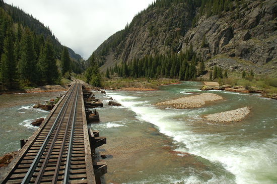 Langsam führt die Strecke von der Höhe hinunter an den Fluss und auf der restlichen Strecke ist der wilde Animas River unser stetiger Begleiter. Wir durchqueren wilde Schluchten, fahren mehrere Male über Holzbrücken und machen ab und zu einen Halt, wenn die Lokomotive wieder Wasser tanken muss.