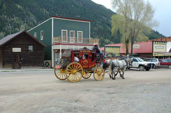 Gegen Mittag wird das schmale Tal offener und wir erreichen Silverton, unser heutiges Ziel. Silverton ist wilder Westen pur! Die meisten Strassen sind ungeteert und staubig und die Vergangenheit ist in jedem Gebäude sichtbar. Alte Postkutschen führen Touristen durchs Dorf. Natürlich sitzt ein waschechter Cowboy mit Sheriffstern und Knarre auf dem Bock! Der Randstein besteht aus Holzplanken und führt teilweise unter den Vordächern der Häuser durch und ein Restaurant heisst geschichtsträchtig "High Noon".