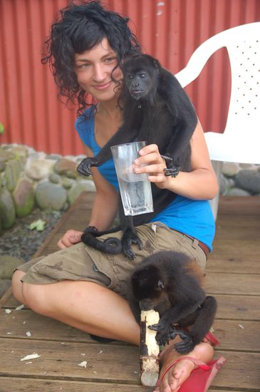 Heppa, hier noch ma n kurzer Zwischenbericht von uns, bevor wir morgen nach Kokainhausen, bzw. Kolumbien fliegen. Gerade eben hat uns noch einer gefragt ,ob wir kurzfristig morgen fuer hundert Dollar mit nem Segelschiff mit in den Norden Kolumbiens wollen. Leider zu spaet, da wir schon vor Wochen unseren Flug in`s middle of nowhere (Bucaramanga) im Osten Kolumbiens gebucht haben. Kolumbien hat im uebrigen nicht mehr den Ruf den es noch vor fuenf Jahren hatte. Wir sind also bester Dinge und freuen uns auf Suedamerika. Mal schauen ob wir uns hier fuer zwei Monate die Zeit vertreiben koennen. So viel zu den kommenden Plaenen. Seit unserem letzten Bericht hat sich aber wieder einiges getan und wir haben viel erlebt. Der Besuch der Alouattalodge (Farm im Dschungel mit den Affen) war eins der geilsten Sachen die wir bisher gemacht haben. So wurden wir fruehs um 7 a.m. von Michelle, einer gebuertigen Neuseelaenderin vor unserem Hostel abgeholt und zu deren Dschungelparadies gekarrt. Der Garten gleicht in etwa einem Zoo und ist mit seinen 15 Hektar auch nicht viel kleiner. Der Ausblick ist hammermaessig, da man auf der einen Seite nur Berge und auf der anderen den Pazifik sieht. Das absolute Highlight machen aber die acht Howlermonkeys (Bruellaffen) aus, von denen zwei Babys sind, aber eigentlich alle megasuess sind. Wir haben dort den ganzen Tag mit den Affen abgehangen und mittags noch eins der besten Essen so far serviert bekommen. Irgendwann mussten wir uns jedoch von unseren neuen Kumpels verabschieden und am nexten Tag gings dann auch schon in die Hauptstadt.
