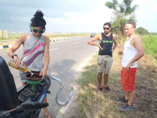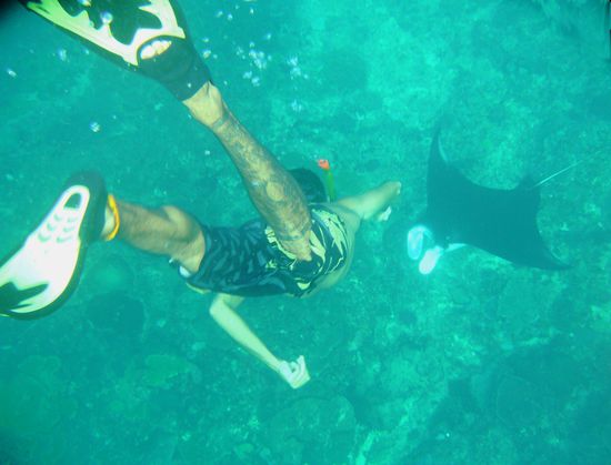 Leider mussten wir in Padang Bai erfahren, dass wir nicht zur Mitnahme nach Ubud gemeldet wurden und keiner unseren Verkaeufer kennt. Cool, wir haben dann solange rumgeheult, bis wir dann n guten Specialdeal und Privatbus gekriegt haben. In Ubud angekommen sind mussten wir auch hier feststellen wie touristisch und extrem entwickelt das einst kleine Staedtchen auf einmal ist. Auch hier wimmelts von aelteren Pauschaltouristen, Boutiquen, scheiss Resorts usw. Aufgrunddessen und der Tatsache, dass Sebastian und Ich keine Enduros auftreiben konnten, sind wir nach zwei Tagen schon wieder weiter nach Sanur. Hier sollten unsere Chancen besser stehen ne Crossmaschine aufzutreiben, zumal ja auch gleich das vor Touristen ueberquillende Kuta Beach um die Ecke ist. Sanur war ok fuer ne Nacht, aber auch hier und selbst in Kuta Beach wurden wir hinsichtlich des Motorrads enttaeuscht. Keiner verleihe angeblich mehr solche Maschinen und die einzigsten die wir haetten auftreiben koennen, waren private und nagelneue 250er von nem Balinesen. Nicht so geil wenn wir die geschrottet haetten und von daher sind wir dann am nexten Morgen kurzerhand mit der Faehre nach Lembongan gefahren. Lembongan ist die vorderste der drei kleinen vorgelagerten Insel im Suedosten Balis. Lembongan wurde uns auf unserer Reise immer wieder als der Geheimtip angepriesen und wir waren sehr gespannt. Auch sollte es recht billig sein und das wurde auch so im Lonely Planet beschrieben. Leider konnten wir kaum was unter 150.000 Rph finden und da war dann auch noch nicht mal n Fruehstueck dabei. Zudem kommt, dass viele der Einheimischen recht unfreundlich sind und wenn ein Local Interesse zeigt, dann auch nur deswegen, weil er Schnorchel, Fishing- oder was auch immer Tour verkaufen will. Das nervt tierisch ab und wir suchen selbst heute nach drei Tagen noch danach, was Lembongan so einzigartig machen soll. Heute haben wir ne Schnorcheltour gebucht und waren mit riesigen Mantarochen schnorcheln, was definitiv das Highlight waehrend unseres Aufenthalts auf Lembongan war. Morgen gehts zurueck nach Kuta Beach, wo wir auf unseren Kumpel Huefbert treffen werden und gleich gibts n leckeres Cordon Bleue und n kaltes Bintang am Strand. So langsam sind unsere Tage leider gezaehlt und da wir eh schon im Minus sind, lassen wirs die letzten Tage in Indo nochma richtig knallen. Alright, Prost und so... Peace ihr Jecken und bis zum nexten mal aus Bali oder schon Hongkong.
