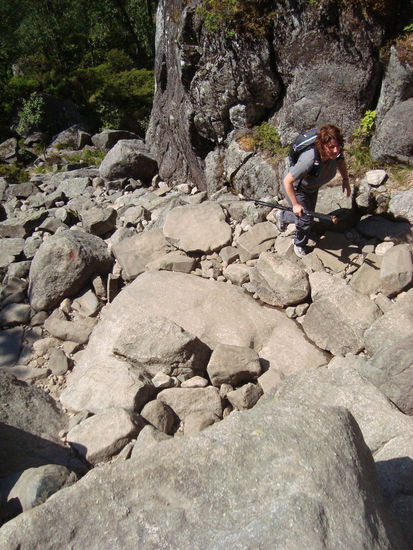Der Weg besteht eigentlich nur aus einer Geröllhalde. Deshalb ist es unverständlich, wie diverse Personen das Vorhaben Preikestolen angehen, mit Halbschuhen, Motorraddress ...! Allein der Abstieg ist nicht ohne - wir haben eine gewaltigen Sturz einer Dame live miterlebt.