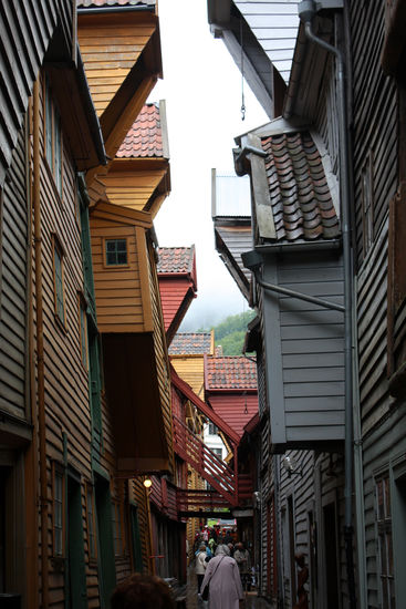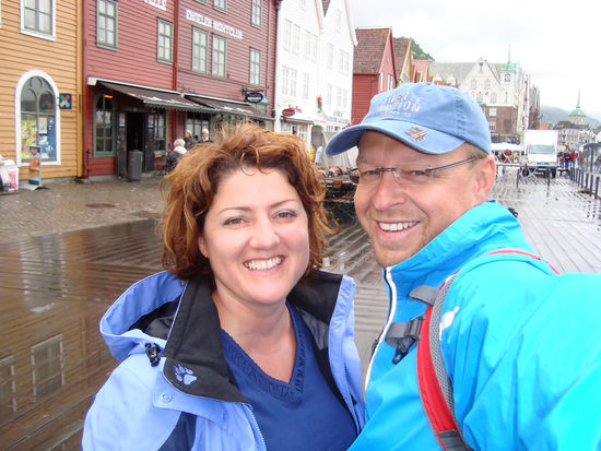 können wir behaupten, dass diese Stadt sehr sympathisch und trotz des Regens Wert ist sie zu besuchen. Den besten Überblick über die Stadt hätte man von der Bergstation der Standseilbahn Fløyen aus. Da sich die Besucherplattform in Nebel und Regenwolken hüllte, sind wir erst gar nicht rauf!