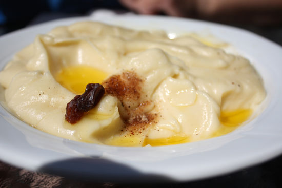 Unsere Kräfte haben wir uns natürlich bei einer typisch norwegischen Spezialität, dem Rømegrøt wieder zurückgeholt. Wir haben zwar schon einiges von dieser Speise gelesen, aber nicht recht gewusst, was uns da erwartet. Es ist so eine Art "Einbrenn" die man aber mit Sauerrahm zubereitet. Dazu gibt es flüssige Butter, Zimtzucker, Rosinen und jede