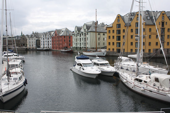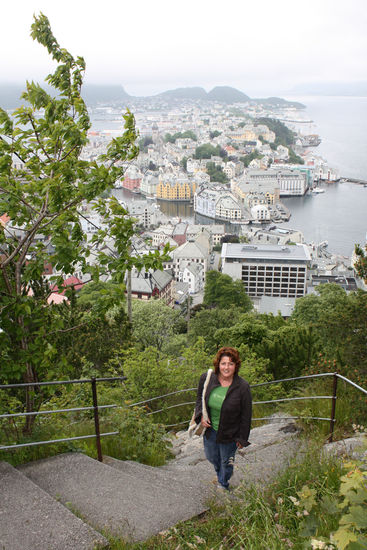 Nachdem wir die Trollstigen hinterunsgebracht haben, wollten wir uns noch Ålesund ansehen. Der beste Ausgangspunkt für eine Stadtbesichtigung ist deren Hausberg Aksla. Dort hat man den besten Überblick über dieses Städtchen und man kann sich auch gleich sportlich betätigen. Man hat nämlich die Möglichkeit, ins Zentrum über 418 Treppenstufen zu gelangen.