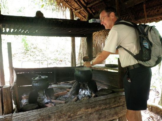 Die letzten vier Tage verbringen wir im Landesinneren. Inmitten eines Dschungelgebiets entstand ein gigantischer Stausee, Kenyir Lake. Der Dschungel um den Stausee und auf den verbliebenen Inseln ist überraschend intakt. Nur Orang Asli dürfen hier jagen und Dschungelprodukte sammeln. Die Resorts liegen sehr weit auseinander und sind meist nur per Boot zu erreichen deshalb entscheiden wir uns für das mit dem besten Restaurant; ein Luxus Resort. Auf unseren Reiseführer (von Stefan Loose) ist eben Verlass - wir speisen köstlich und das sogar mit einer Flasche Wein. Ein Fest. Aber wir faulenzen nicht nur und lassen uns massieren, nein, wir unternehmen kurze Dschungeltrecks (1-2 Stunden) und einen Ausflug zu den Lasir-Wasserfällen und zur Insel Sa Kecil, wo ein Kräuterpark eingerichtet ist, in dem mehr als 200 Heilkräuter angebaut werden. In einer Bambushütte wird Tongkat Ali (für sie) und Kacip Fatimah (für ihn) zubereitet, die nicht nur die Potenz steigern sollen, sondern in der traditionelle Medizin auch gegen Malaria, Fieber und Krebs eingesetzt werden.
