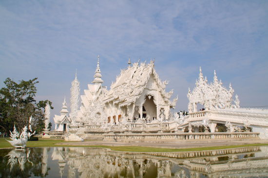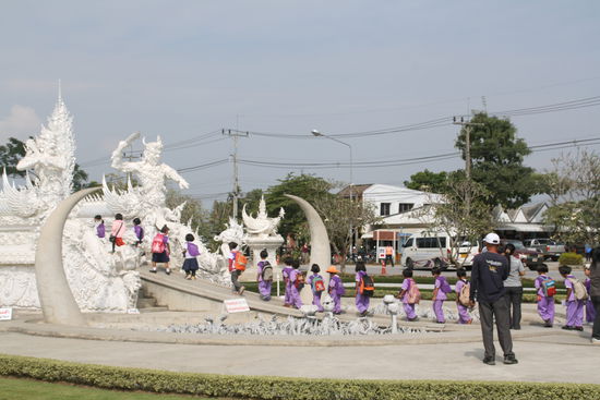 Heute ging es wieder auf den Highway zurück nach Chiang Mai. Kurz hinter Chiang Rai entdeckte ich zufällig den berühmtesten Wat der Stadt (Wat Rong Khun), den wir eigentlich gar nicht mehr auf dem Plan hatten.