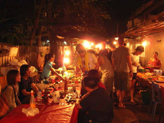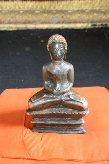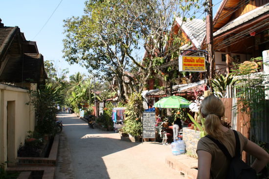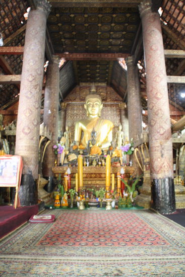 Auf halbem Wege fiel mir auf, dass unsere gute Canonkamera noch über der Stuhllehne im französischen Cafe hing. Ruckzuck saßen wir im nächsten TukTuk, brausten zurück, und zum Glück wurde die Kamera hinter dem Tresen aufbewahrt. Dat jute Stück und 1200 Fotos waren gerettet. Nun ging es aber wirklich zum Tempel, der aber nicht das hielt, was Stefan Loose versprach. Auf unserer bisherigen Reise hatten wir schon wesentlich größere und schönere Wats bestaunen können. Trotzdem war der Xieng Thong auf alle Fälle einen Besuch wert, weil alleine das Hochheben einer antiken Buddhafigur (das durfte man...), was die Erfüllung eines Wunsches versprach, den Weg bis zum letzten Zipfel der Tempelhalbinsel wert war.