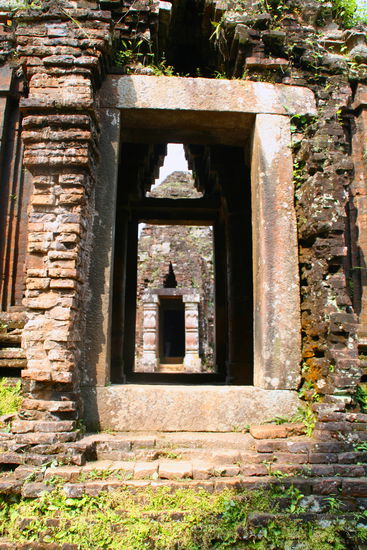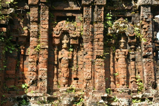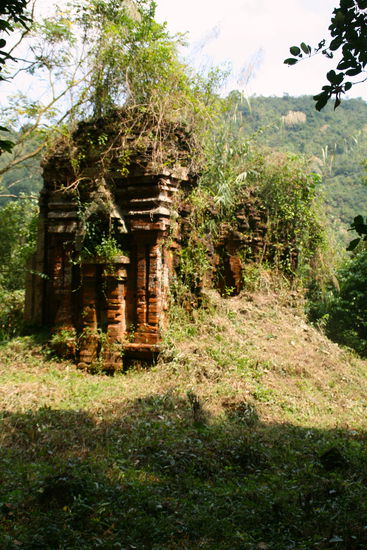 Heute Vormittag hatten wir einen Ausflug zur 45 km entfernten Tempelruinenstätte "My Son". Wir traten den Trip mit ziemlich hohen Erwartungen an, wurden aber etwas enttäuscht. Vor unserem inneren Auge hatten wir ein an Mystik nicht zu überbietendes Bild, was wir dann sahen, waren hauptsächlich Touristen...!