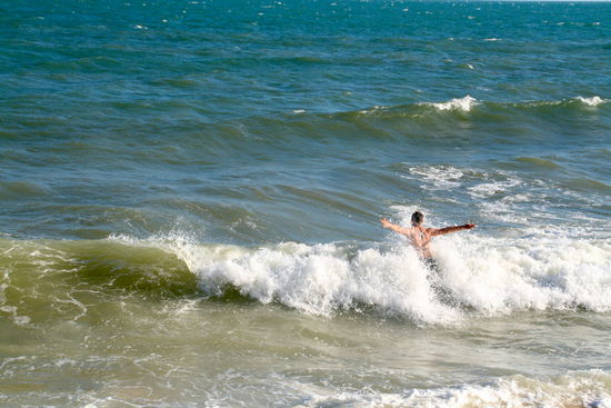 sprangen aber auch ins das 28 Grad warme Meer mit den riesigen 3 Meter hohen Brandungswellen - herrlich, super, fantastisch !