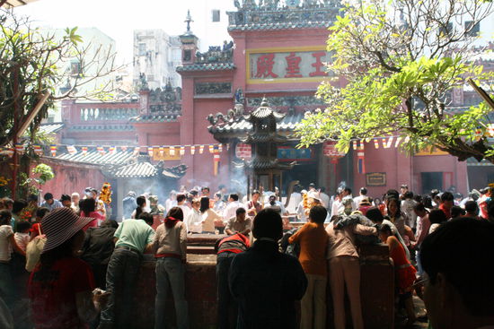 Heute haben wir erst mal richtig schön bis 11:00 Uhr ausgeschlafen - herrlich...und auch kein Problem, da wir heute nur ein paar Pagoden im Chinaviertel Cho Lon anschauen wollten - ohne Zeitdruck ! Und so war es dann auch - ganz entspannt ließen wir uns erst mal vor die Pagode des Jadekaisers fahren. Leider hatten gefühlte 12.000 Vietnamesen die gleiche Idee...!