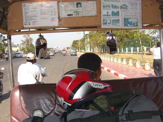 Der erste Eindruck war durchaus positiv - alles sah neu, frisch und "zivilisiert" aus. Und schon hatten wir die ersten Taxihäscher an den Hacken...! Der eigentliche Plan war, uns zum Busbahnhof fahren zu lassen und dann irgendwie Richtung Süden nach Sihanoukville zu kommen...! Unser TukTuk- Fahrer machte uns dann aber unvermittelt das Angebot, uns ein privates Taxi zu besorgen.