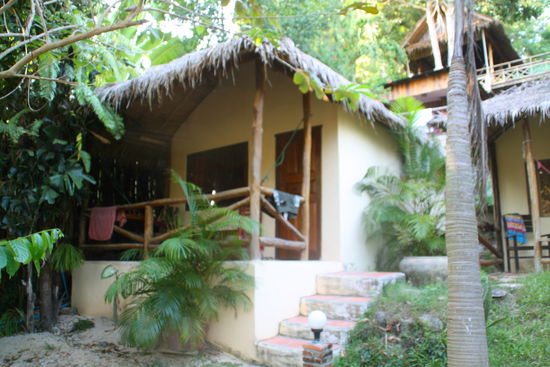 Am nächsten Tag (heute) checkten wir aus, ließen uns zurück zum Strand fahren, und nach kurzer Suche bezogen wir einen kleinen Bungalow - fast direkt am Wasser.