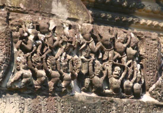Es gab praktisch keine Wand, keine Mauer, kein Pfeiler, keinen First, der eine glatte Oberfläche hatte. Alles war verziert und an den Galerien wurden richtig Geschichten erzählt bzw. dargestellt - meist von Göttern und Dämonen.