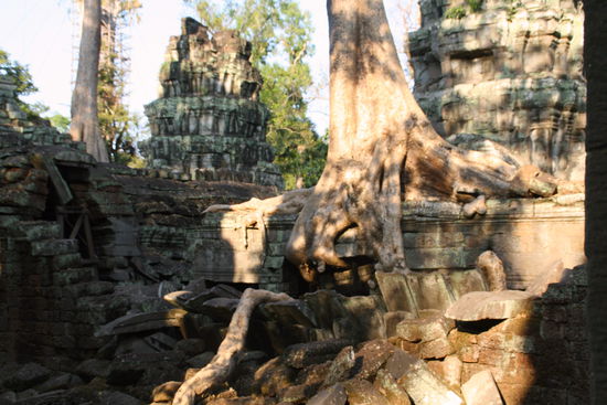 Dieser Tempel war eine totale Verschmelzung von der Kraft der Natur, uralter Kultur und dem Mythos der Vergänglichkeit. Eigentlich können Worte das Gesehene nicht beschreiben...nur soviel - schenkeldicke, ja sogar körperdicke Wurzeln umklammerten die Trümmer bzw. Ruinen des alten Tempels - so als ob die Natur die alten Mönche verjagt hätte. Die Szenerie hatte eine total mystische aber auch zufriedene / einträgliche Ausstrahlung - Wahnsinn - und wieder ein Goldstück in unserer geistigen Schatzkiste.
