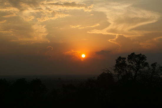 Zum Sonnenuntergang ließen wir uns zum nahegelegenen Tempelberg fahren. Die gleiche Idee hatten ALLE anderen Touristen in Siem Reap augenscheinlich auch - jedenfalls war der Berg voll davon und wir mittendrin. Nun ja - was macht man nicht alles für ein paar schöne Sonnenuntergangsfotos...!