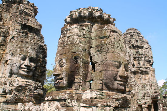 Heute ging es zum Tempel Angkor Thom mit seinem Haupttempel Bayon. Ich zitiere mal den Loose: "Ein Meisterwerk der Architektur". Am Ende unserer Besichtigung hatten wir sensationelle Bilder im Kasten, die hoffentlich die wuchtige Mystik (Ich weiß, dass ich mich in meiner superlativen Wortwahl wiederhole, aber andere Wörter passen einfach nicht...) des Bauwerks eingefangen haben...!