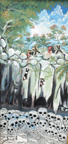 Die Höhle schauten wir uns auch noch an, und beim Anblick der aufgestapelten Totenköpfe, Knochen und Kleidungsreste wuchs wieder der Kloß im Hals und die Wut im Bauch...!