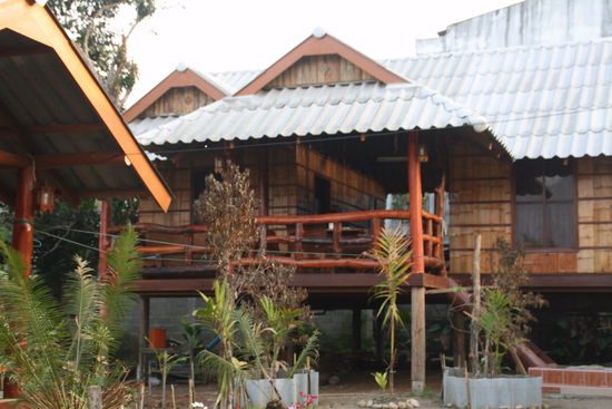 Zurück in Umphang überfuhr ich ohne Vorsatz ein Huhn (so ein ganz kleines), das über die Straße lief aber abrupt auf halbem Wege stoppte. Nun ja - was soll ich sagen - zum Abendessen gab es Reis mit Huhn...! Die Zimmersuche wurde heute echt zur Qual, da mir kein Guesthouse bzw. die dazugehörigen Matratzen gefiel. Da bin ich schon ziemlich eigen, wenn es darum geht, weich zu schlafen. Und bei dem, was einem teilweise angeboten wird, kann man auch gleich draußen auf einem Stein nächtigen...! Per Zufall wurden wir dann von einem Einheimischen zu einem versteckten Guesthouse geleitet, was sich als Glücksgriff erwies. Die Matratzen waren zwar auch nicht der Hit aber wir fühlen uns hier pudelwohl - für 4 Euro die Nacht und Warmwasserdusche. Wir haben eine schicke Bambushütte mit Ritzen in den Wänden und Moskitonetz über dem Bett - wie romantisch...!