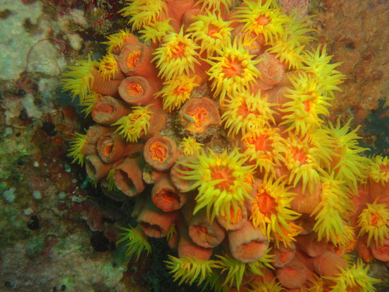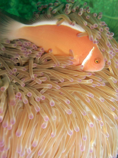 Pünktlich um 08:00 Uhr wurden wir abgeholt und eine halbe Stunde später saßen wir in der Nuckelpinne, die uns zum Tauchschiff brachte. Mit von der Partie waren u.a. 2 deutsche Pärchen sowie ein österreichischer und ein deutscher Guide. So konnten wir vor, zwischen und nach den Tauchgängen endlich mal wieder ausgiebig quatschen. Mit der Tauchbasis haben wir einen guten Griff gemacht - nichts braucht man machen, das gesamte Equipment (sogar die Bleigürtel werden jeden Tag neu bestückt) wird an- und umgerödelt und sogar den Regler bekommt man gereicht. Das Boot ist gemütlich, die Crew nett und die Guides kompetent. Wir hatten ja gleich 3 Tauchgänge gebucht, und der erste ging gleich mal in die Hose...! Wir verloren ziemlich schnell unsere Gruppe, denn die Sicht betrug weniger als 5 Meter - also war das nur eine Frage der Zeit, wenn man sich nicht kennt...! Wir warteten 1 Minute, tauchten dann auf (keiner zu sehen), beratschlagten kurz, tauchten wieder ab und erkundeten selbständig das Riff. Mit noch 100 bar in der Buddel machten wir uns dann aber doch zurück zum Boot. Im Nachhinein erfuhren wir, dass wir die anderen Taucher auf der falschen Seite des Riffs vermuteten, und so konnten wir uns gar nicht wiederfinden. Aber gut - Klappe die Zweite - diesmal waren wir beide alleine mit dem Guide unterwegs. Dies klappte viel besser, aber leider wurde die Sicht noch schlechter. Das Highlight war dann aber der 3. TG - super Riff, gute Sicht, tolle Korallen und AnemonenFELDER, so weit das Auge reicht - klasse...und Anreiz genug für Sandra, am Donnerstag doch noch mal mit tauchen zu kommen.