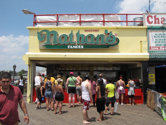 Da es so heiss ist, und es weit und breit keinen Schatten gibt, bleiben wir nicht lang, essen nur eine Kleinigkeit bei Nathans (weltberühmt fürs Hot-Dog-Wettessen!) und machen uns auf nach China-Town. Dort gibt es ein deutsches Lokal (Biergarten) und wir wollen dort das Spiel Deutschland - Ghana anschauen. Da wir etwas spät dran sind bekommen wir dort aber keinen Platz mehr. Das Lokal ist voll von Deutschen und Deutschland-Fans... auf dem Weg dorthin sind wir aber an einer kleinen Bar vorbei gekommen, wo das Spiel ebenfalls lief. Dorthin sind wir zurück. Schöne Bar. Gemütlich. Und wir hatten den Fernseher praktisch für uns. Ausser uns waren nur noch zwei weitere Gäste da
