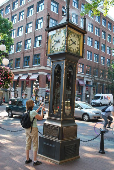 Meine Stadterkundungen setze ich in der historischen gastown fort, die ist alt für kanadische Verhältnisse, sehr pittoresk und wunderbar hergerichtet. Das Highlight hier ist die einzige dampfbetriebene Uhr der Welt. Die ist permanent umlagert von Touristen und man bekommt einfach kein Foto, ohne dass sich nicht x Touristen um die Uhr tummeln.