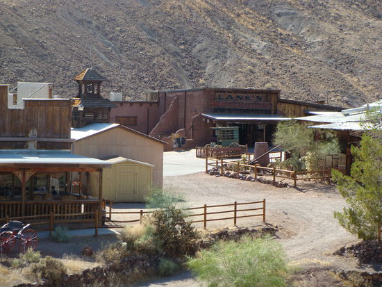 Die Fahrt nach Barstow verläuft ohne Hindernisse, und gegen 14:30 Uhr kommen wir im Hotel Desert Villa an. Der Name ist passend, denn wir befinden uns mitten in der Mojave Wüste. Als wir aus unserem klimatisierten Wagen aussteigen, trifft uns die Hitze wie eine Keule. 109 °F sind es hier (Rechnet bitte selbst aus, wieviel °C es sind. Die Formel dafür lautet ( °Fahrenheit - 32 ) * 5 / 9). Jede Bewegung wird zur Qual. Aber unser Tagesprogramm sieht noch den Besuch in der Geisterstadt Calico vor. Nach kurzer Pause im Hotelzimmer begeben wir uns in die "Ghosttown". Es ist eine nette kleine Stadt, wie man sie aus den Clint Eastwood-Filmen kennt. Holzhäuser, eine Silbermine, ein kleiner Friedhof, und sogar der Wind fegt das verdörrte Gras über die unbefestigte Straße.