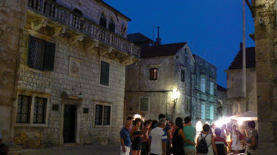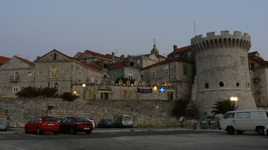 Nach der Ankunft am Nachmittag wahren wir erst einmal etwas enttäuscht von der Stadt, im Gegensatz zum hell strahlenden Dubrovnik wirkt Korcula Stadt verlassen und ein wenig heruntergekommen. Ein Großteil der Gebäude ist überzogen von einer Art dunkler Patina.