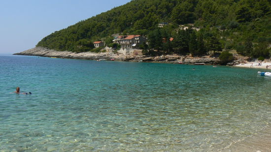 Eine davon ist Lumbada unweit von Korcula Stadt im Osten, diese ist sehr lebhaft, mit einer Strand-Cocktail-Bar und einigen Restaurants.