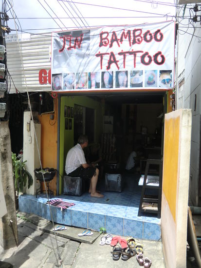 Da der Tag zur freien Verfügung ist, schlendern wir so durch unsere Straße und machen am Tattoo Laden halt....