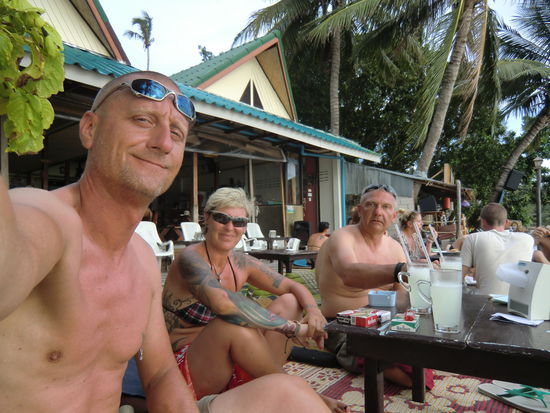 Wir packen also unseren Krempel zusammen und marschieren zur Terrasse, da wir ja immer noch unseren Kaffee inklusive haben !!!