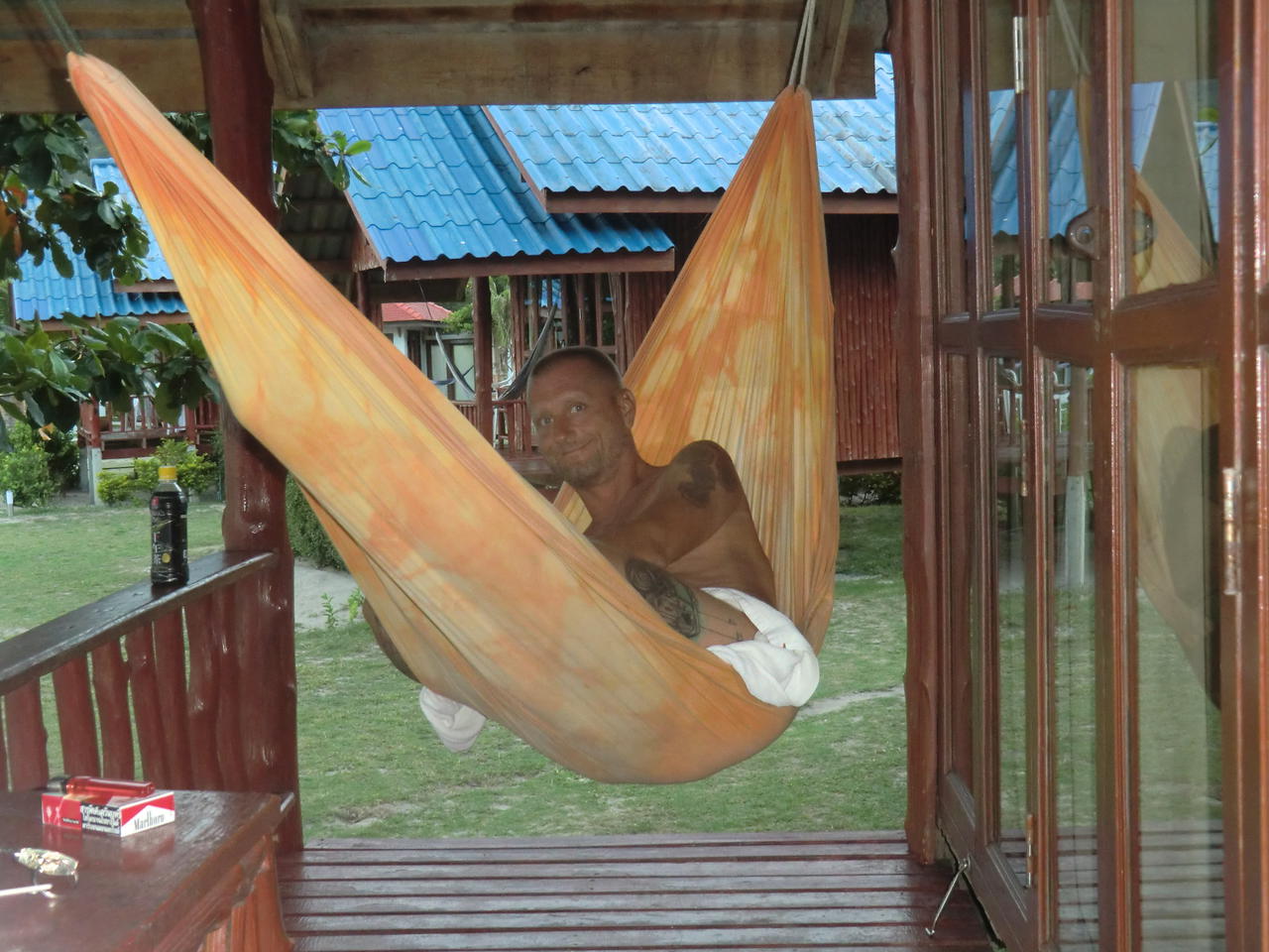 Nach nem Stündchen abplanschen im Wasser hauen wir uns wieder in die Hängematte und beobachten die Jetskip-Verleiher bei ihren Verladeaktionen und lachen uns kaputt.