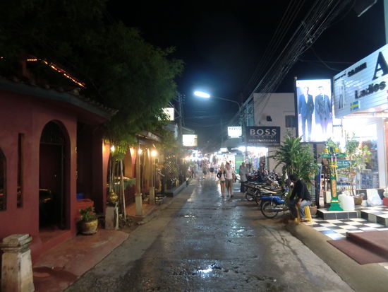 Wir laufen bis zum Bo Phut Pier, verlassen den Strand und tauchen ein in Fishermann's Village". Eine kleine gemütliche Straße, in der sich ebenso kleine gemütliche Gaststätten und Geschäfte aneinander reihen.