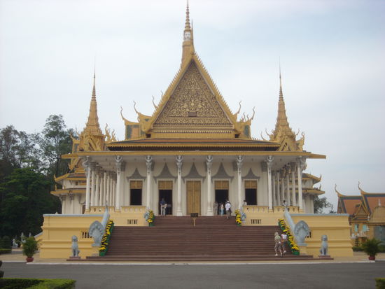 Hallo zusammen. Den heutigen Tag haben wir bereits hinter uns und sind auf dem Weg ins Traumland. Wir sind heute um 0700 aufgestanden und haben bereits um 0800 Uhr den Königspalast besucht. War eine gute Entscheidung denn etwas später sind die "Touristenameisen" eingefallen. Die Besichtigung war unheimlich interessant und unser Führer hat uns viel über die Geschichte und die Kultur erzählt. Danach haben wir die Silberpagode besichtigt, welche den Namen durch den vollständig aus Silber hergestellten Fussboden erhalten hat. Zudem haben wir auch die Stipa von Kantha Bopha, der Tochter des Königs, welche mit 5 Jahren an Leukämie gestorben ist besichtigt. Aus diesem Grund sind die Spitäler von Dr. Richner entstanden, unterstützt durch den König. Wir freuen uns jetzt schon auf die Besichtigung in Siem Reap. Im Anschluss an den Königspalast haben wir What Phnom mit den Pagoden besichtigt. Unheimlich, was hier alles geopfert wird...... traditionsgemäss haben wir auch zwei Vögeln das Leben geschenkt. Danach haben wir wunderbar zu mittag gegessen. Am Nachmittag haben wir das Museum der Roten Khmer besucht. Ohne Worte. Zur Verdauung haben wir noch einen Spaziergang an der Seepromenade gemacht und unter anderem auch die Brücke, auf welcher letztes Jahr die Massenpanik stattfand, gesehen. Wirklich kein angenehmer Nachmittag. Zum Abschluss haben wir aber noch eine einstündige Fahrt auf dem Mekong unternommen. War einfach herrliche. Wie gesagt in der Zwischenzeit haben wir bereits gegessen und machen uns auf den Weg ins Bett. Morgen geht es bereits um 0730 Uhr los Richtung Siem Reap. Wir melden uns. Cu.......