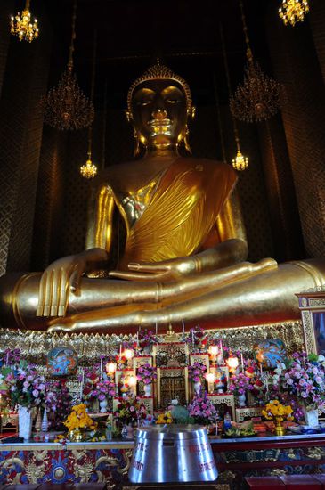 Dann weiter flussabwärts durch Klongs, Strassen und zwei Wats besichtigt, den Wat Kalayanamit, recht gross, vor allen Dingen keine Touris. Weiter zur Kirche Santa Cruz, im ehemaligen portugiesischen Viertel Bangkoks. Danach zum Gebiet des Wat Prayunwongsawat, der im kreisrunden Inneren hunderte von Minischreinen beherbergt. Auf der im Gelände angelegten Insel leben hunderte von Schildkröten im Wasser, in Thailand ein Symbol für langes Leben. Man kann dort Futter kaufen und sie füttern, das bringt Glück. Mir hat es gereicht, im ersten Tempel eine Spende zu geben und ein wenig über den Sinn meines Lebens im Angesicht Buddhas nachzudenken.......es hat geholfen.
