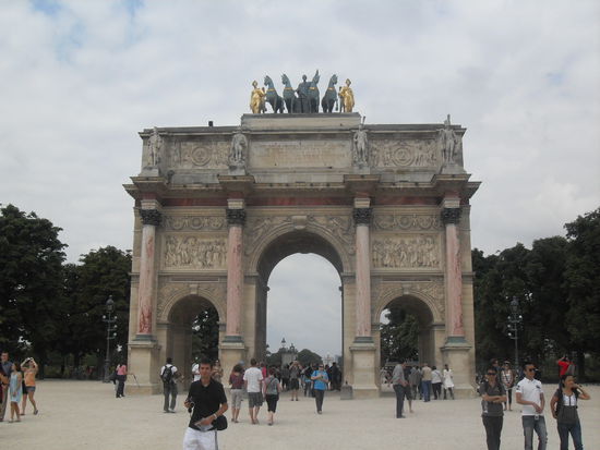 Als wir weiter durch den Jardin des Tuileries Richtung Louvre spazierten, durchquerten wir einen Triumphbogen, der aber ähnlich aussah wie das Brandenburger Tor, nur etwas kleiner. Ricky bezeichnet es immer noch als Kopie!