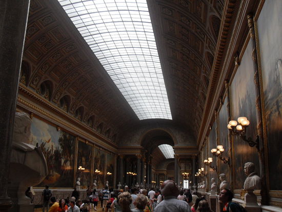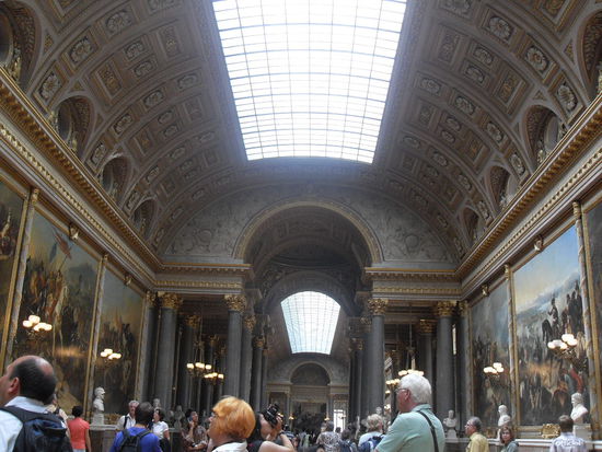 Allerdings ist man in Versailles sehr pingelig, was Besucher angeht, die etwas anfassen oder kreativ fotografieren wollen. Als sich ein Mann mit dem Rücken auf den Fußboden legte, um ein optimales Foto von der Deckenbemalung zu machen, kam natürlich sofort ein Aufpasser zum Meckern.