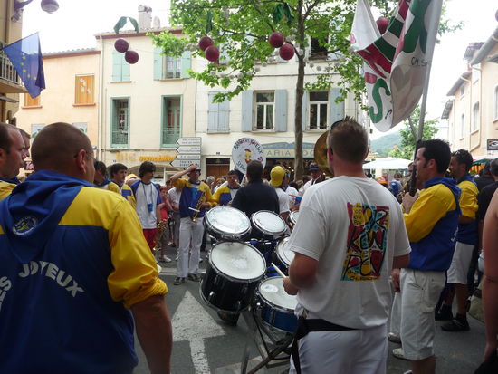 Céret ist aber auch sehr katalanisch geprägt und der Nationaltanz Serdane soll hier seinen Ursprung haben. Außerdem konnten wir den Bau sogenannter "Menschentürme" - den Castellers - beobachten. Die Castellers zu bauen ist in Katalonien eine bis ins 18. Jahrhundert zurückgehende Tradition. So ganz haben wir das System nicht durchschaut, aber die akrobatische Leistung ist nicht ganz ohne. Zwei verschiedenfarbige Teams traten an, um von unten her einen immer höheren Menschenturm zu bauen. Ganz oben zwei Kinder (Leichtgewichte), die den Turm überquerten und dann mit erhobener Hand signalisierten, dass der Turm vollendet ist. Begleitet wurde dieser Turmbau durch Musikanten, die an mittelalterliche Spielmannsleute erinnerten.
