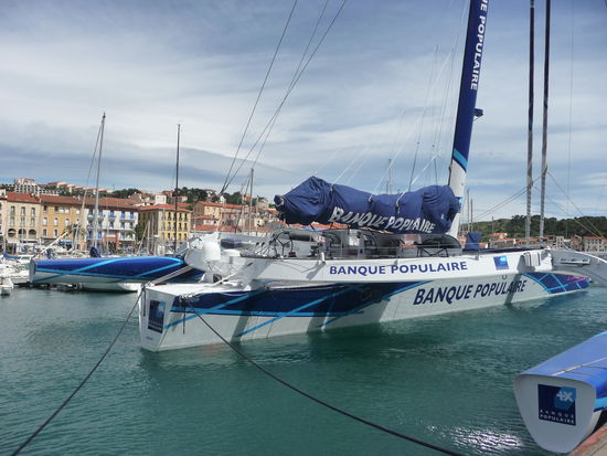 Port Vendres war das erste Ziel und hier waren wir zunächst höchst beeindruckt von den dicken Schiffen, die da im Hafenbecken lagen. Ein großes Kreuzfahrtschiff, ein gigantischer Hochsee-Trimaran, etliche Fischtrawler. Also erst mal Schiffe gucken....