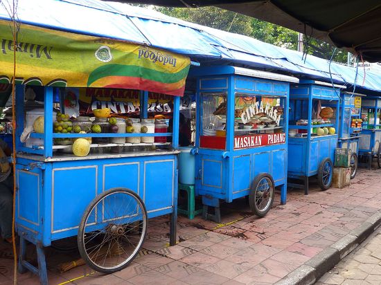 Ganz schlimm hier in Indonesien ist, dass es wieder so viel leckere Streetfood gibt. Ich bin nur am Essen. Kaum ist das Fruehstueck unten, laufe ich schon wieder an Stalls vorbei und halte nach Lunch Ausschau. Man kann foermlich zusehen, wie die verlorenen Kilos wieder auf den Hueften landen